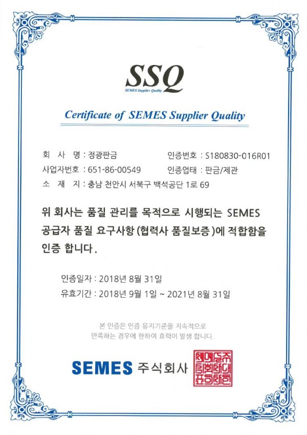 SSQ인증서(공급자품질인증) 페이지 정보 작성자 최고관리자 작성일18-09-20 14:02 조회10,274회 댓글0건 관련링크 이전글 다음글 목록 본문 SSQ인증서(공급자품질인증) 이전글 다음글 목록